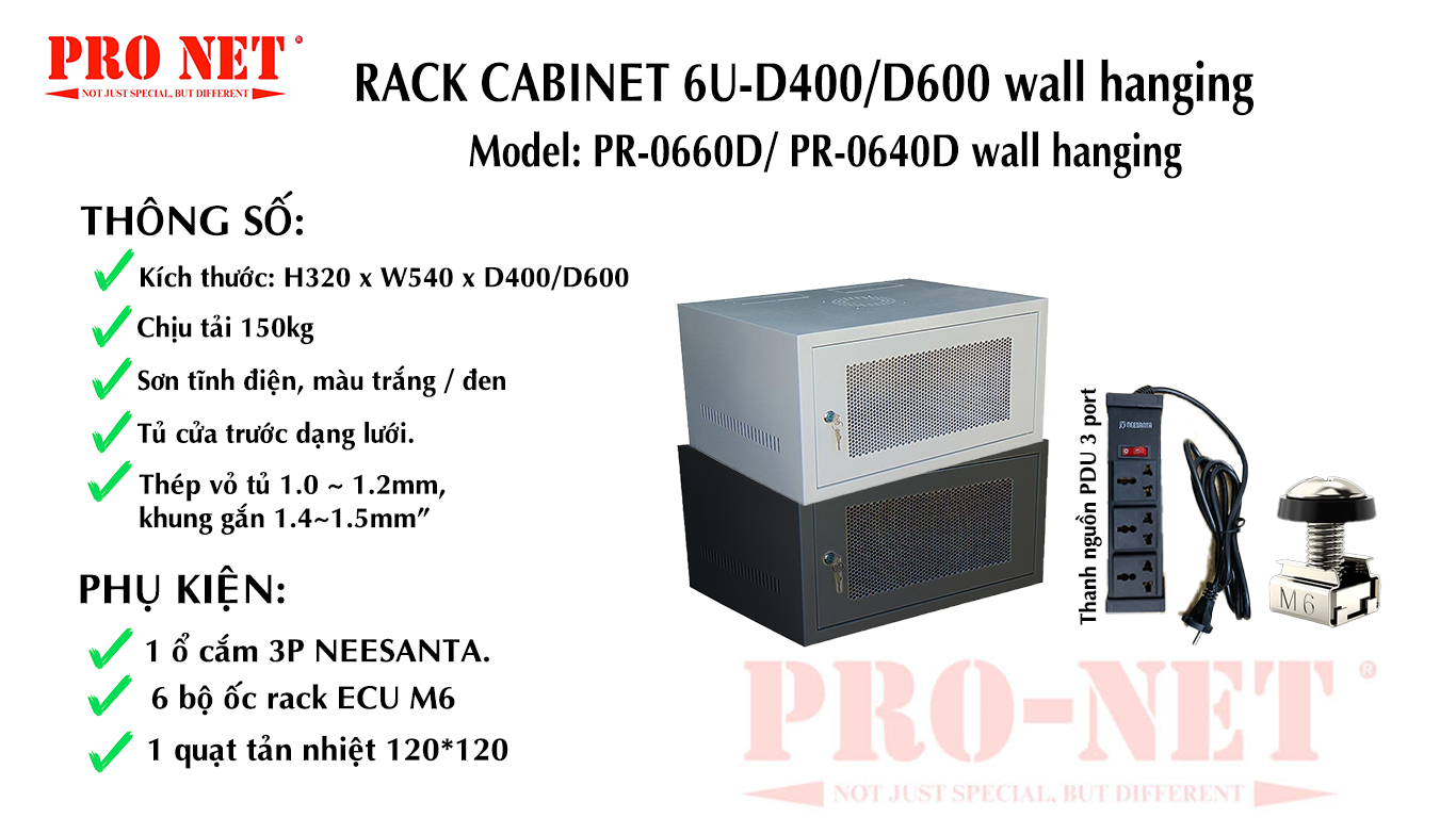 Thông số kỹ thuật tủ rack 6U-D600, tủ rack server chuyên dụng