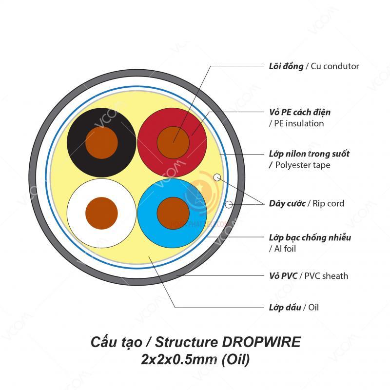 Dây thuê bao đồng ngầm có dầu, chống nhiễu 2x2x0.5mm PE