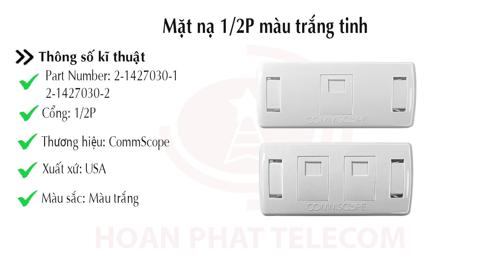 Mặt nạ 1 port Faceplate Kit Shutter COMMSCOPE (2-1427030-1) và Mặt nạ 2 port Faceplate Kit Shutter COMMSCOPE (2-1427030-2)