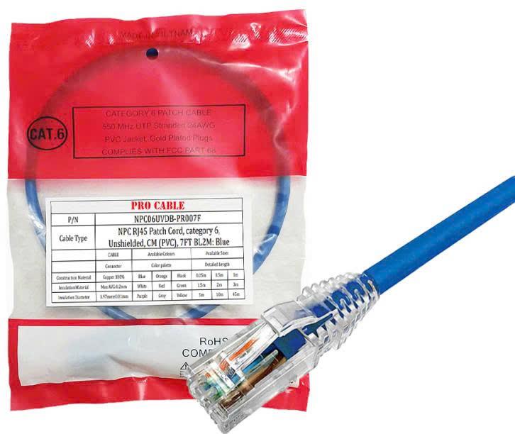 Dây Nhảy Mạng NPC RJ45 Patch Cord Pro Cable, Category 6, Unshielded, CM (PVC), 7FT (2 Mét) - Giải Pháp Kết Nối Hiệu Suất Cao Từ Hoàn Phát Telecon