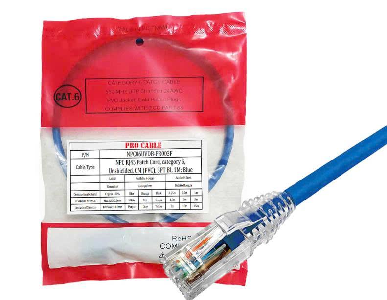 Dây nhảy mạng NPC RJ45 Patch Cord Pro Cable, Category 6, Unshielded, CM (PVC), 3FT, 1 mét rất phù hợp cho: