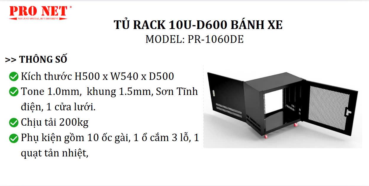 Tủ Rack 10U-D600 Bánh Xe PRO NET MODEL: PR-1060DE - Giải pháp quản lý thiết bị mạng nhỏ gọn, linh hoạt và hiệu quả